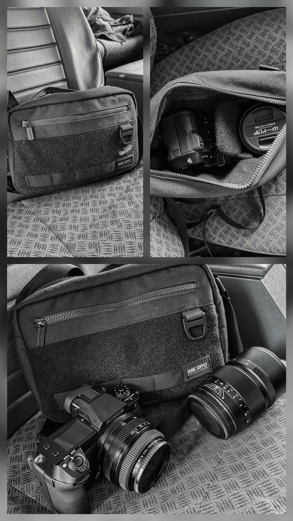 This bag is the perfect size for getting out and about with everything you need for the day. Small enough to not weigh you down and feel too bulky, but big enough so I can carry everything I need for film or digital. The dividers are quick and easy to change around depending on what camera(s) I’m taking out of the house, and the build quality is superb. Very happy with my first purchase from Hung Supply!